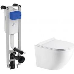 Инсталляция для унитаза Ideal Standard Prosys 120 P + подвесной безободковый унитаз IP001401 + сиденье с крышкой микролифт T453101.