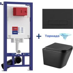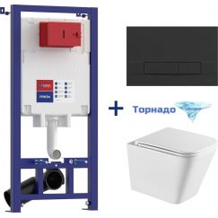 Инсталляция Lemark Peneda с подвесным безободковым унитазом Florex Торнадо 100802420, сиденье с крышкой микролифт, цвет кнопки чёрный матовый, крепление.
