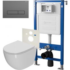 Комплект: инсталляция Oli 80 Eco с кнопкой смыва 886914SLO3, подвесной унитаз Point Меркурий PN41831GM, сиденье с крышкой микролифт.