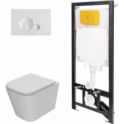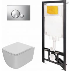 Комплект: инсталляция Point Элемент PN45120, кнопка смыва Меркурий PN44831C, подвесной унитаз Виктория PN41061, сиденье с крышкой микролифт.