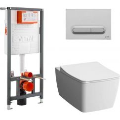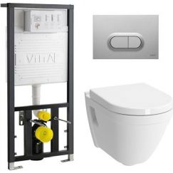 Комплект: инсталляция Vitra Normus L-Box, кнопка смыва хром, подвесной унитаз Vitra, сиденье с крышкой микролифт.