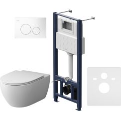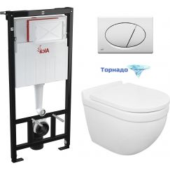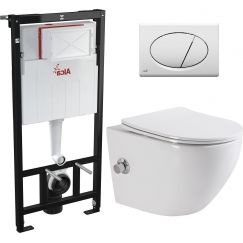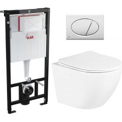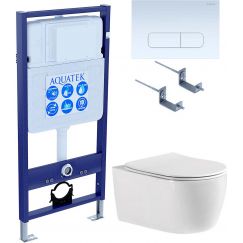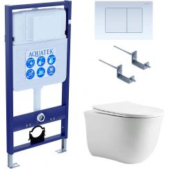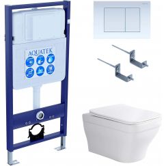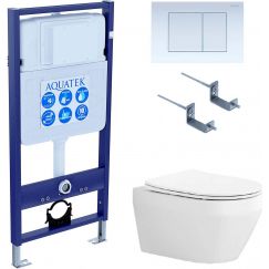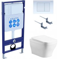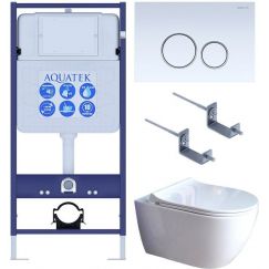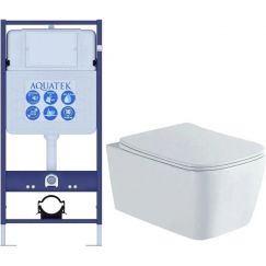 Инсталляция с подвесным унитазом комплект: Aquatek Set INS-0000012 с подвесным безободковым унитазом Амадео AQ1163-00 сиденье микролифт, крепление, кнопка смыва белая.