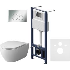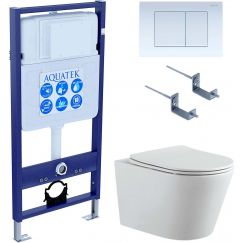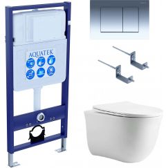 Инсталляция с подвесным унитазом комплект: Aquatek Set INS-0000012 с подвесным безободковым унитазом Амадео AQ1180-00 сиденье микролифт, крепление, кнопка смыва хром глянцевая.