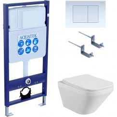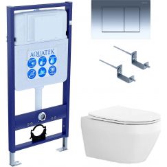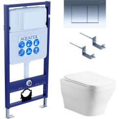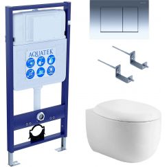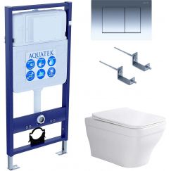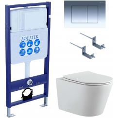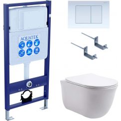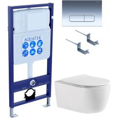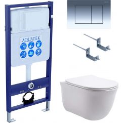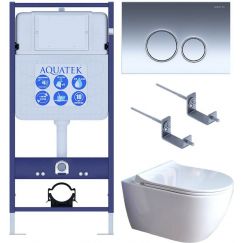 Инсталляция с подвесным унитазом комплект: Aquatek Set INS-0000012 с подвесным безободковым унитазом Лея AQ1199-00 сиденье микролифт, крепление, кнопка смыва хром глянцевая.