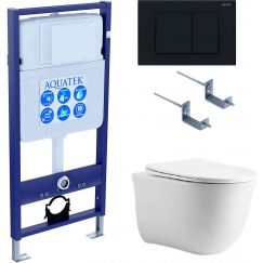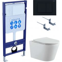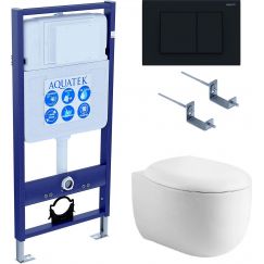 Инсталляция с подвесным унитазом комплект: Aquatek Set INS-0000012 с подвесным безободковым унитазом Лея AQ1199-00 сиденье микролифт, крепление, кнопка смыва чёрная матовая.
