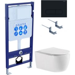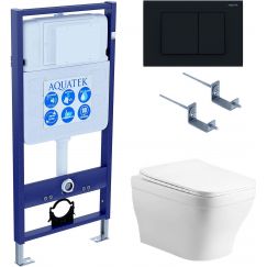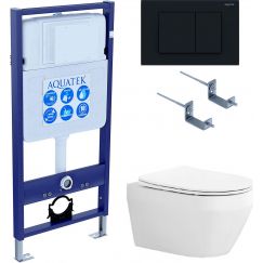 Инсталляция с подвесным унитазом комплект: Aquatek Set INS-0000012 с подвесным безободковым унитазом Амадео AQ1180-00 сиденье микролифт, крепление, кнопка смыва чёрная матовая.