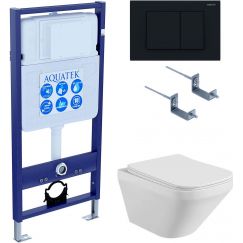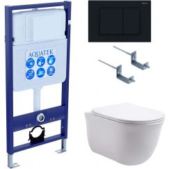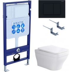 Инсталляция с подвесным унитазом комплект: Aquatek Set INS-0000012 с подвесным безободковым унитазом Классик AQ1111-00 сиденье микролифт, крепление, кнопка смыва чёрная матовая.