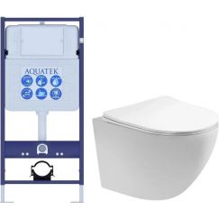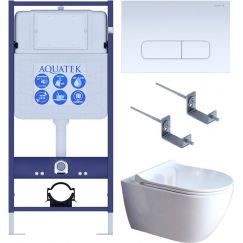 Инсталляция с подвесным унитазом комплект: Aquatek Set INS-0000012 с подвесным безободковым унитазом Лея AQ1199-00 сиденье микролифт, крепление, кнопка смыва белая.