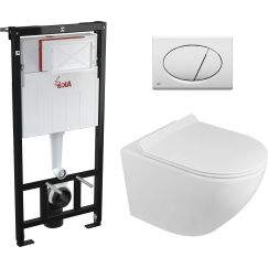 Комплект: подвесной унитаз S-50 RIM-EX безободковый с сиденьем микролифт, инсталляцией 740-5800-01 и панелью управления 740-0580.