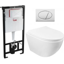 Инсталляция с подвесным унитазом комплект: Aquatek Set INS-0000012 с подвесным безободковым унитазом Амадео AQ1180-00 сиденье микролифт, крепление, кнопка смыва белая.