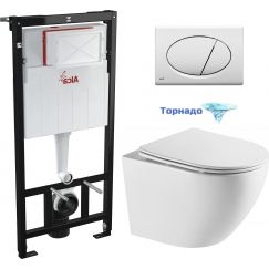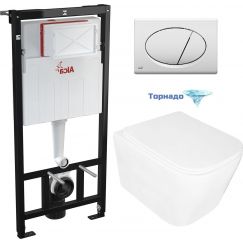 Инсталляция с подвесным унитазом комплект: Aquatek Set INS-0000012 с подвесным безободковым унитазом Европа AQ1106-00 сиденье микролифт, крепление, кнопка смыва белая.