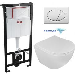 Инсталляция с подвесным унитазом комплект: Aquatek Set INS-0000012 с подвесным безободковым унитазом Лира AQ1155-00 сиденье микролифт, крепление, кнопка смыва белая.