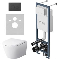 Инсталляция с подвесным унитазом комплект: Am.Pm ErgoFit FlashClean IS110138.741701 с подвесным безободковым унитазом, сиденье микролифт, кнопка смыва чёрная.