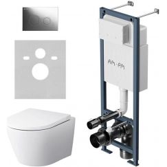 Инсталляция с подвесным унитазом комплект: Am.Pm ErgoFit FlashClean IS110151.741701 с подвесным безободковым унитазом, сиденье микролифт, кнопка смыва хром.