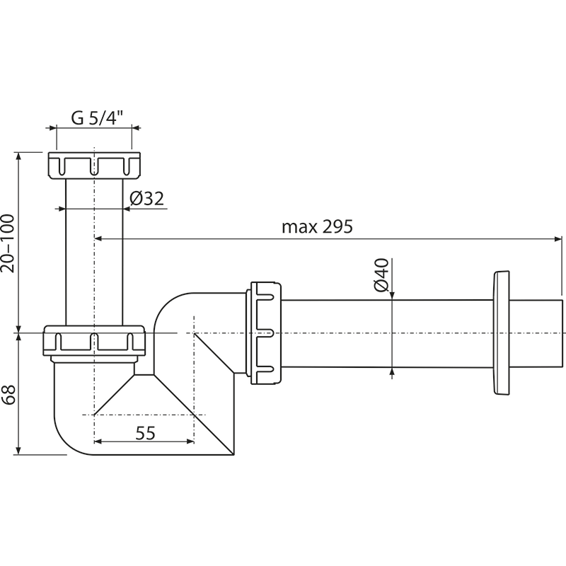 Сифон для умывальника и биде AlcaPlast A45F DN40