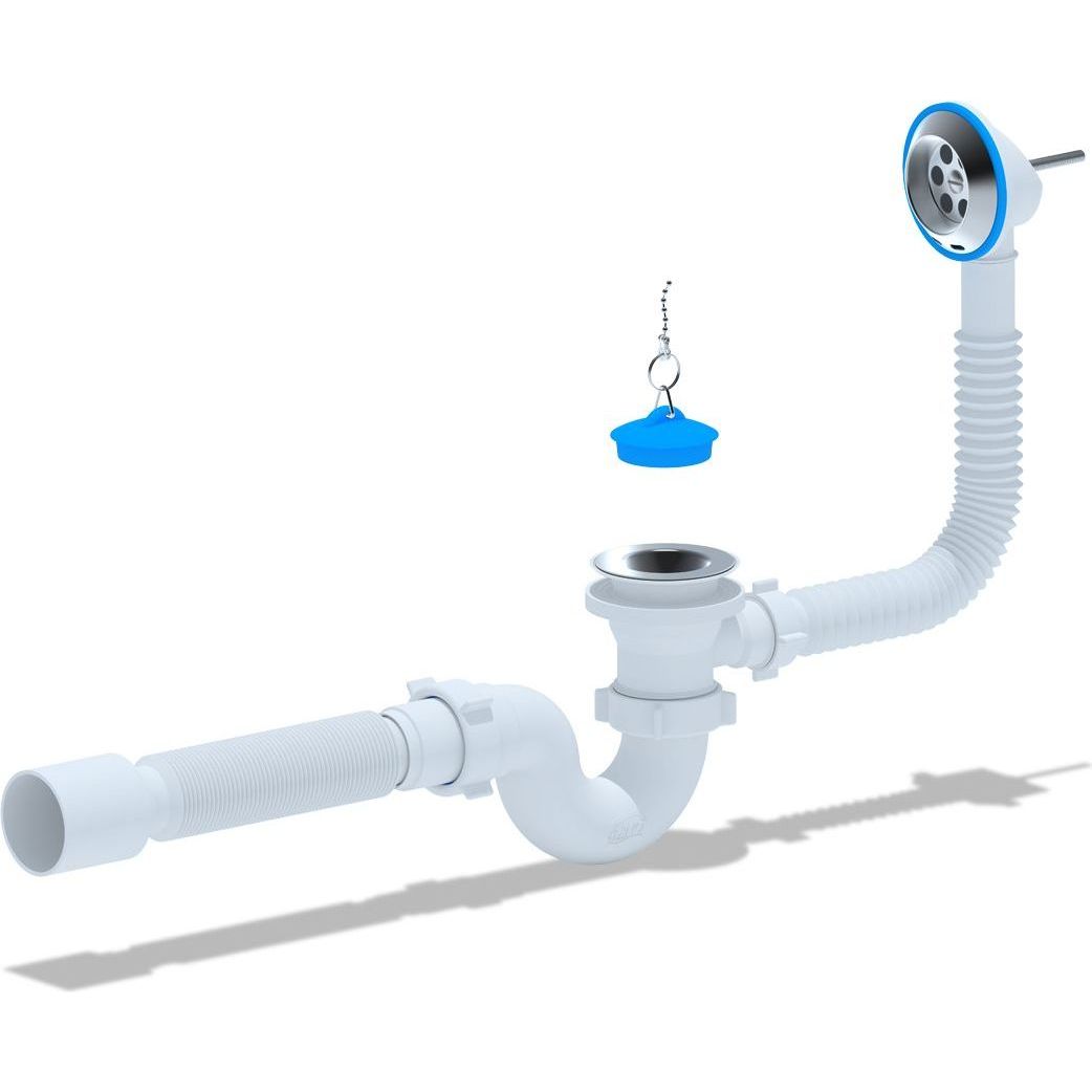 Для ванн с отверстием слива Ø50 мм и отверстием перелива от Ø 36 до 63 мм (стандартное отверстие 50 мм)
