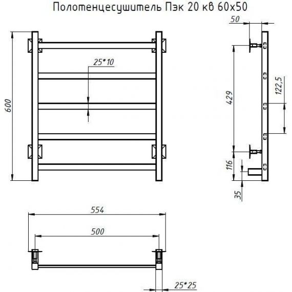 Полотенцесушитель электрический Тругор Пэк 20 П5 500х600 мм 00-00031493