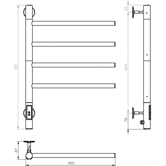 Полотенцесушитель электрический Vincea 597x430 мм VTD-1S1CE, хром