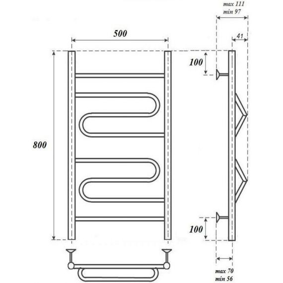 Полотенцесушитель водяной Point, 8 перекладин, материал нержавеющая сталь, цвет хром.