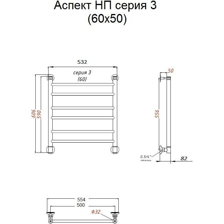 Полотенцесушитель водяной Тругор Аспект НК3 П6 500x600 мм 00-00021610