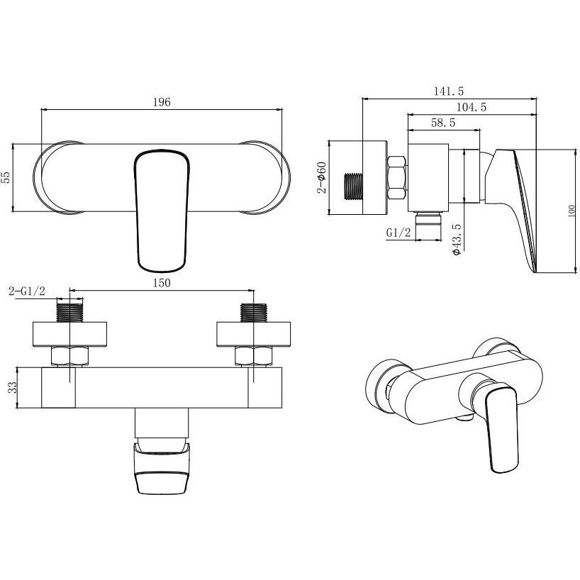 Набор смесителей 3 в 1 для душа Aquatek Вега AQ1036CR