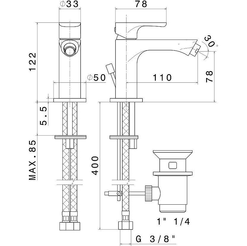 Смеситель для биде Kerama Marazzi Ole 69425KM.M0.071 с донным клапаном, материал - латунь, цвет - золотой атласный.