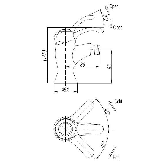Смеситель для биде Cezares LIRA-C-BS1-01, с донным клапаном, материал - латунь, цвет - хром.
