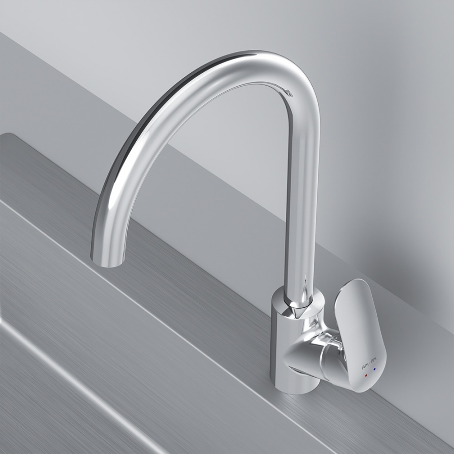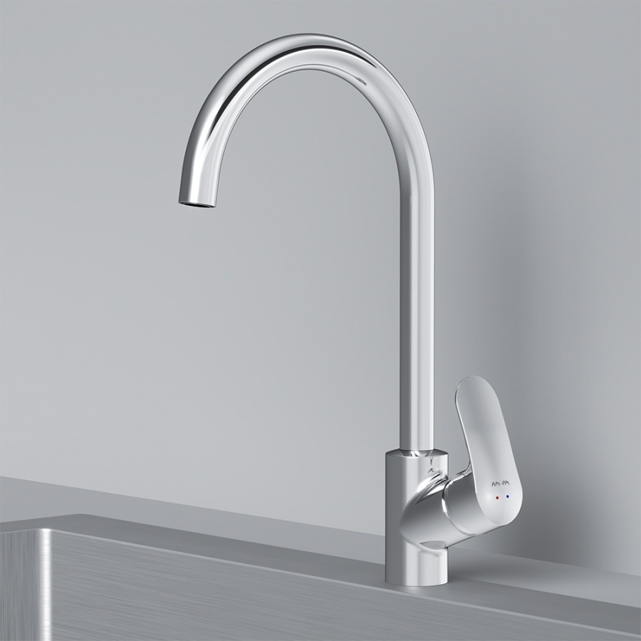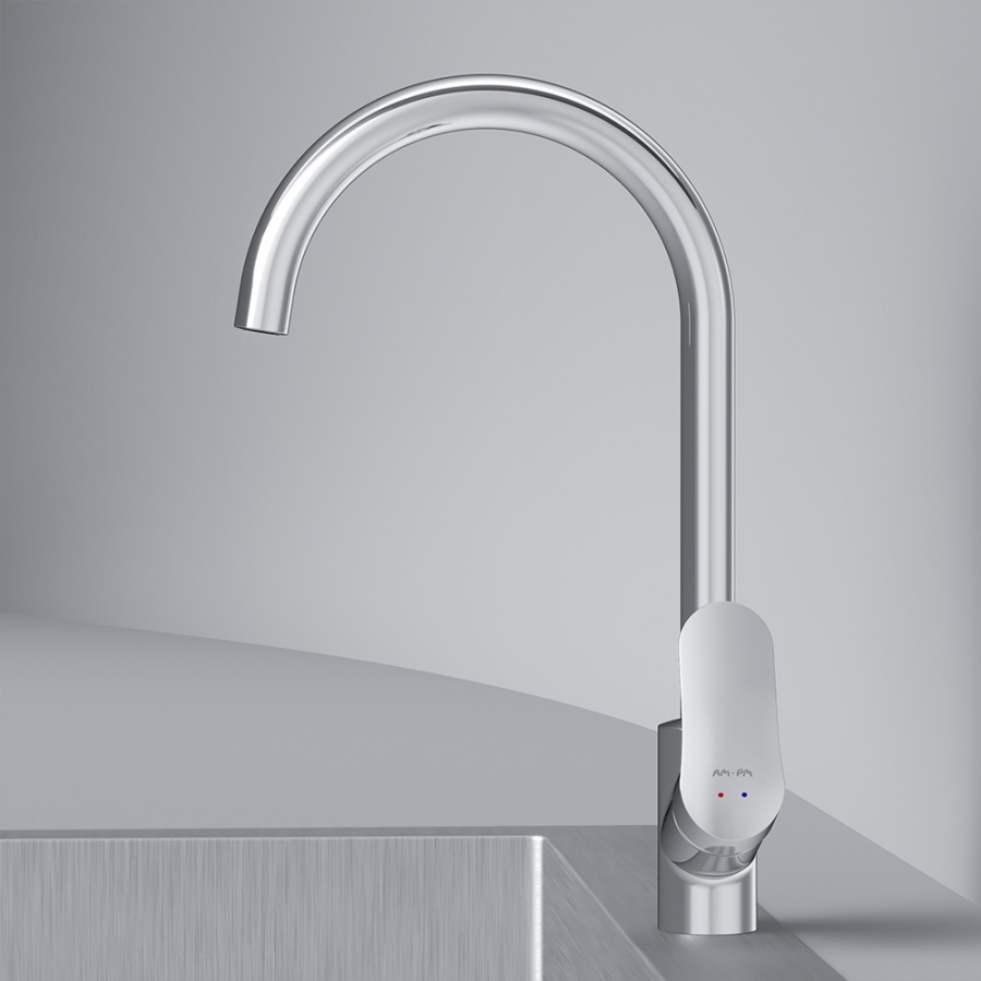 Кухонный смеситель АМ.РМ со встроенным каналом для питьевой воды успешно совмещает в себе два в одном. Благодаря прогрессивной технологии Fresh Boost при вращении ручки на 90 градусов вы можете наслаждаться чистой водой из фильтра. Если же Вам нужна обычная вода смеситель управляется привычным способом. Также конструкция совмещающая в себе 2 в 1 экономит место и придаёт кухне опрятный вид без лишних элементов. Ультрамодный стиль смесителя - Dynamic Organic - это природные формы в сочетании с четкими линиями доведенными до совершенства человеком.