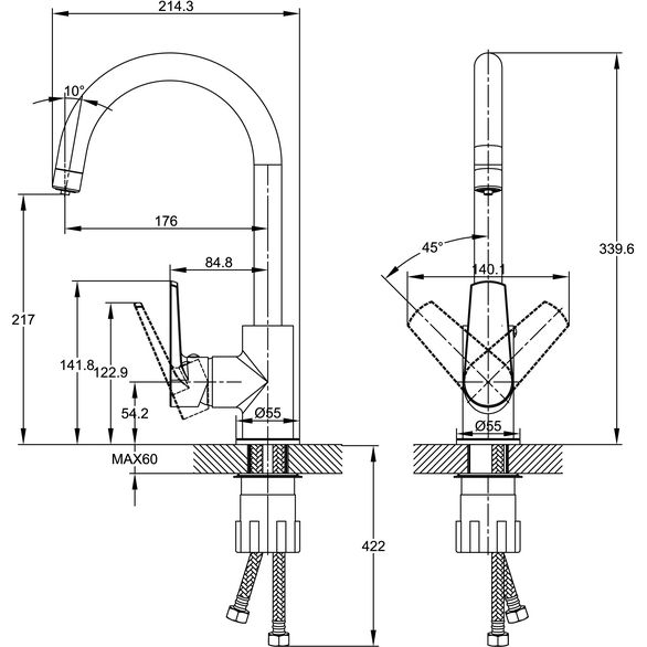 Смеситель для кухни Cersanit Moduo A64839 с подключением фильтра питьевой воды, высота излива 217 мм, материал латунь, цвет хром.