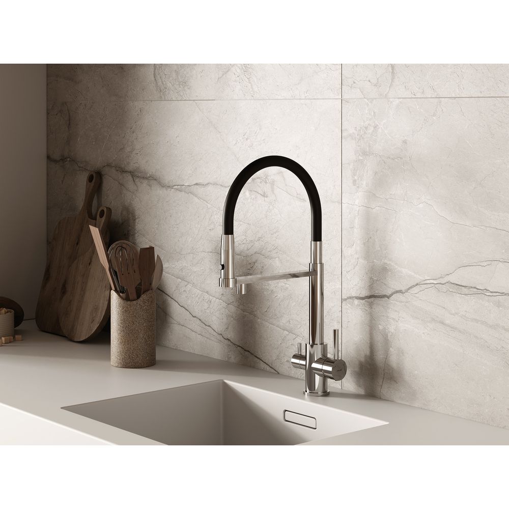 Смеситель для кухни Cersanit Zen A68249 с подключением фильтра питьевой воды и гибким изливом, высота излива 266 мм, материал латунь, цвет хром.