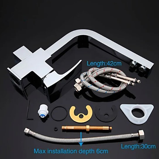 Смеситель под фильтр Gappo G4307 — это качественный инструмент для кухни, с помощью которого можно быстро и легко вымыть посуду, овощи и многое другое. Конструкция смесителя G4307 обладает вторым краном, к которому можно подключить воду, которая будет поступать после очистки фильтром. Дизайн смесителя выполнен в кубическом стиле, что позволит вписать его в любой тип кухонного интерьера.