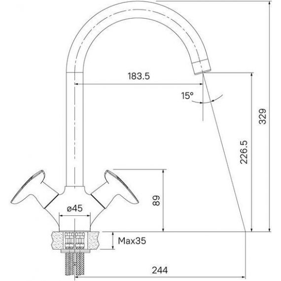 высота излива: 22.7 см