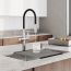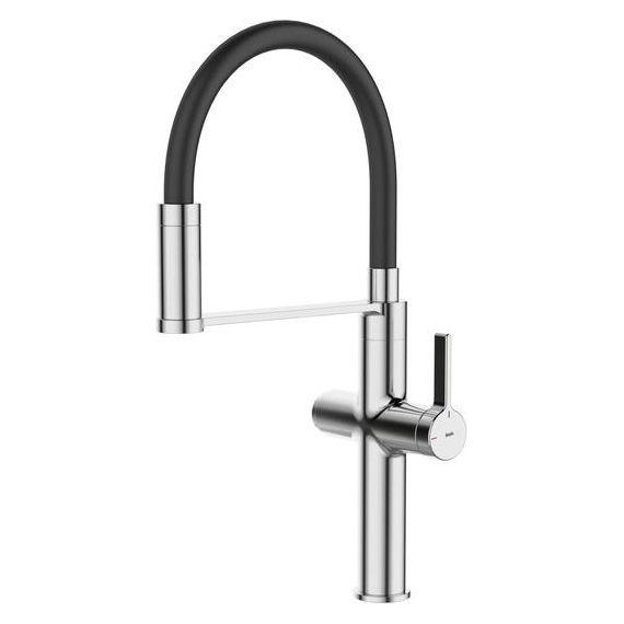 Профессиональный смеситель для кухни Ikon с чёрным гибким изливом и отдельным каналом для фильтрованной воды. Современный, продуманный и функциональный, он успешно справляется с повседневными задачами на кухне.
