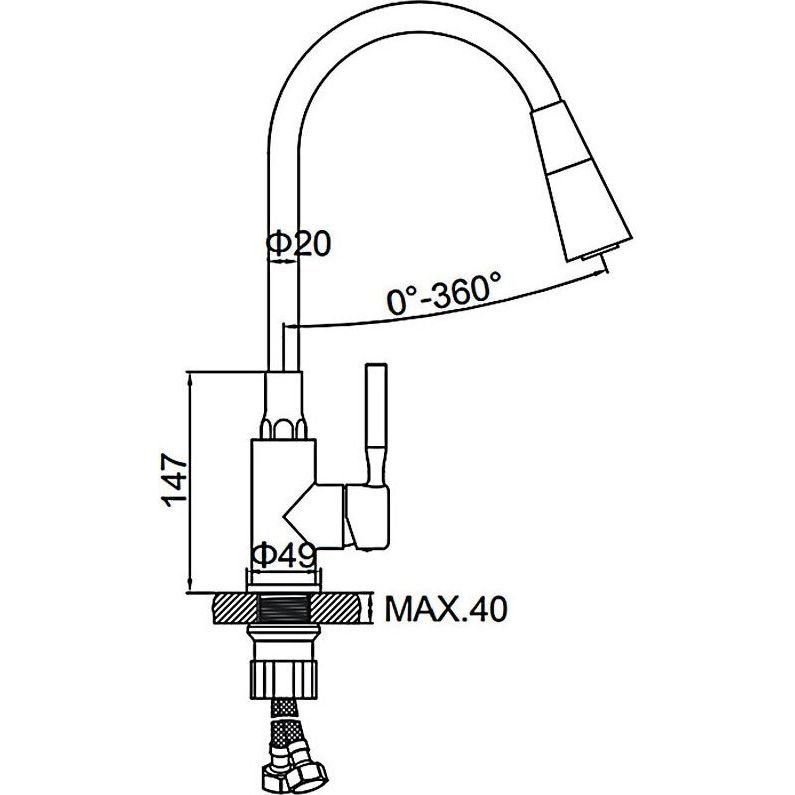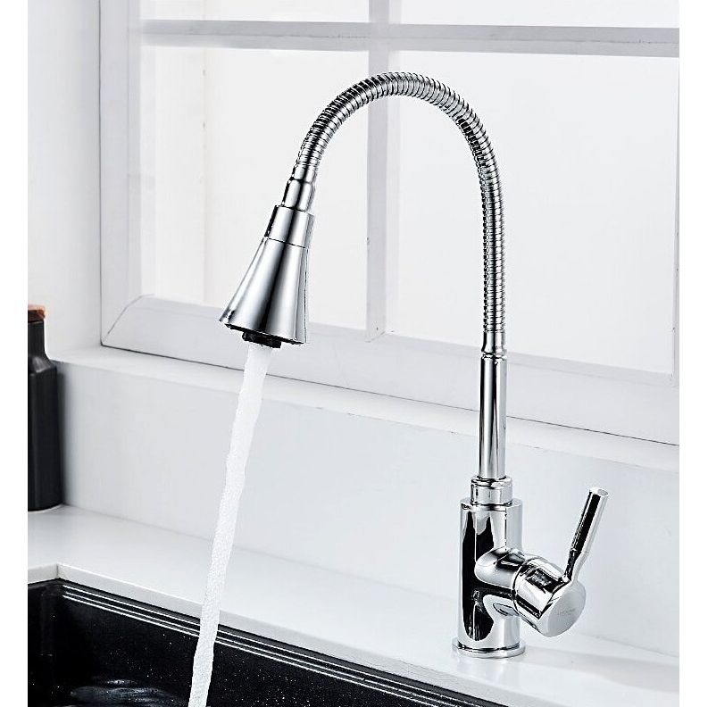 Смеситель для кухни Ledeme L4199 с гибким, поворотным изливом, материал - латунь, цвет - хром.