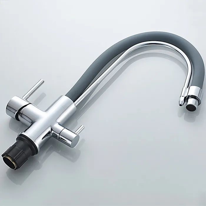 Смеситель для кухни Ledeme L4755-9 с гибким изливом и подключением фильтра, материал - латунь, цвет - хром/серый.