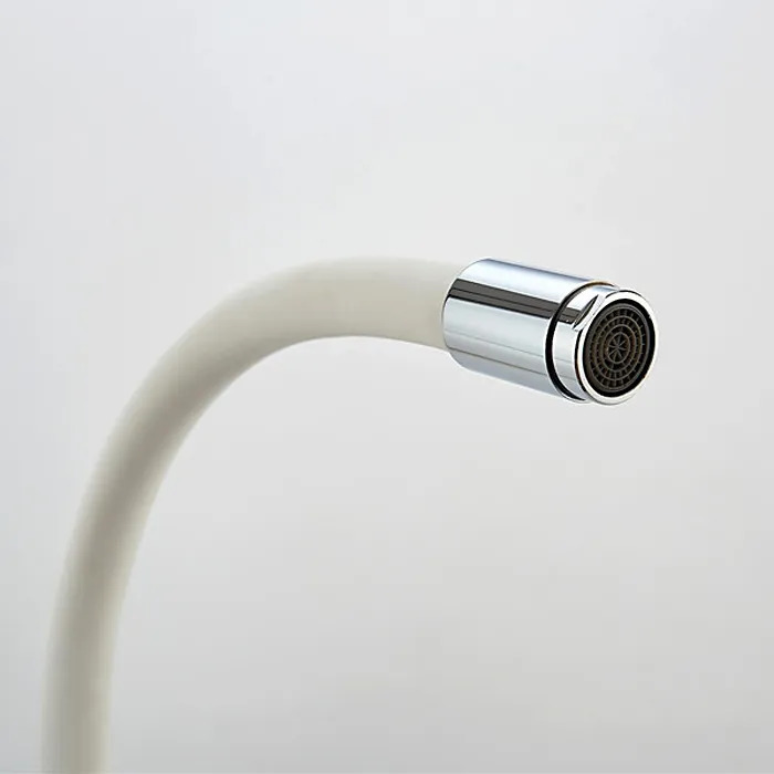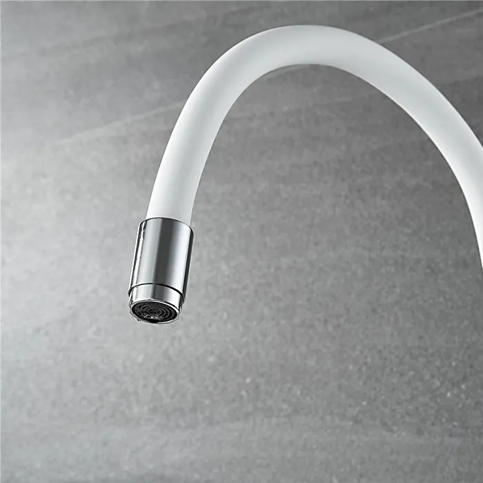 Смеситель для кухни Ledeme L4898-3 с гибким изливом, материал латунь, цвет хром, белый.
