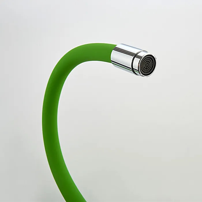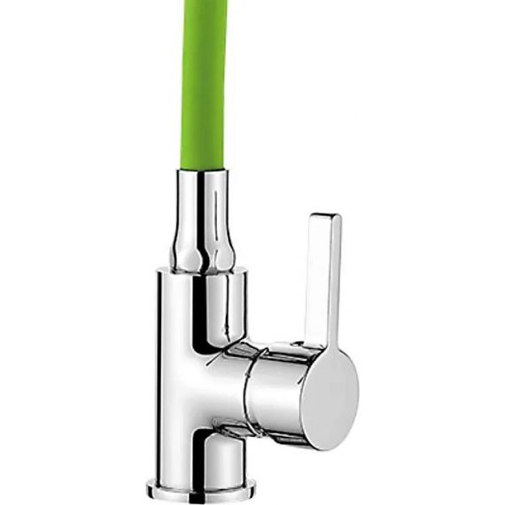 Смеситель для кухни Ledeme L4898-5 с гибким изливом, материал латунь, цвет хром, зелёный.