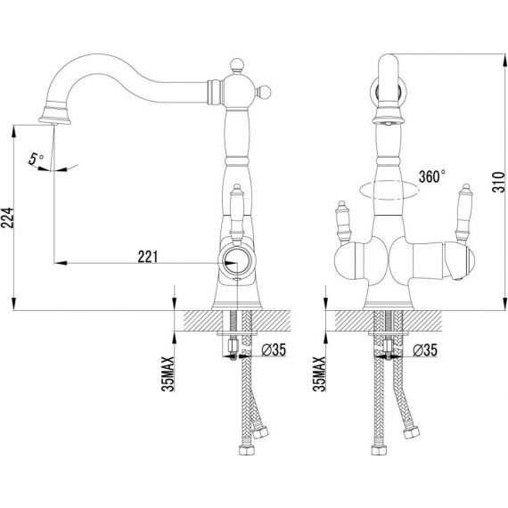 Для крана с питьевой водой: кран-букса с керамическими пластинами (угол поворота – 90 градусов)