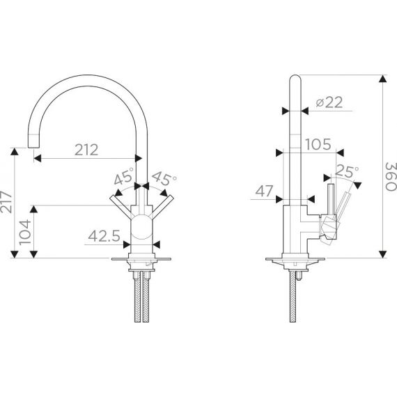 Современный дизайн и удобство использования благодаря высокому изливу;