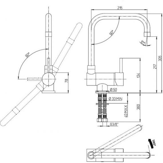 Складная конструкция смесителя позволяет установку под окном без потери обзорного вида.