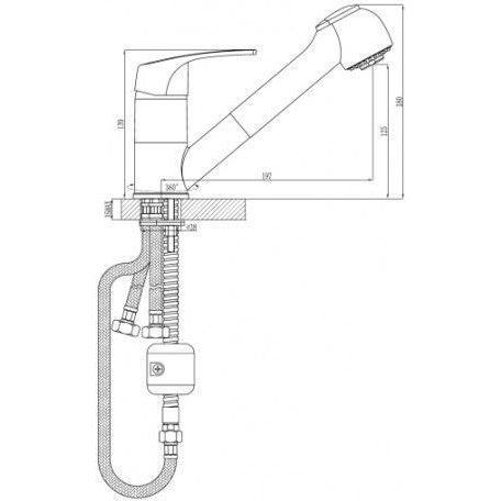 2-х функциональная излив-лейка с пластиковым аэратором и гибким шлангом 1,2 м