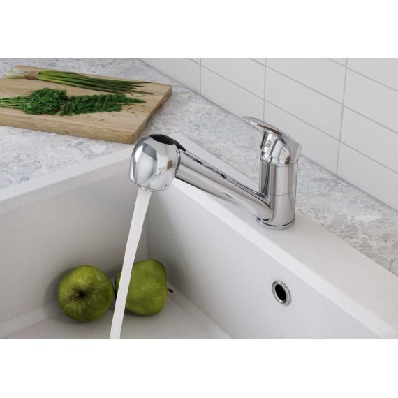 Смеситель для кухни Santek Мавис с выдвижным изливом, высота излива 116 мм, материал латунь, цвет хром.