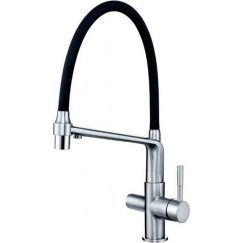 Смеситель для кухни Gappo G4398-7 с гибким, поворотным изливом и подключением фильтра питьевой воды , материал - латунь, цвет - черный/хром.