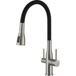 Смеситель для кухни Gappo G4399-75 с гибким изливом и подключением фильтра, материал - латунь, цвет - сатин/черный.