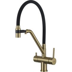 Смеситель для кухни Gappo G4398-83 с гибким изливом и подключением фильтра, материал - латунь, цвет - золото/черный.