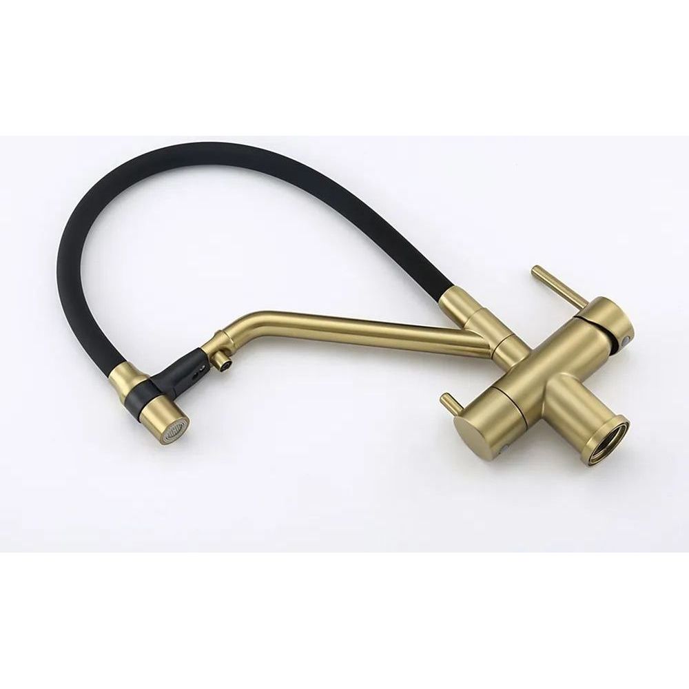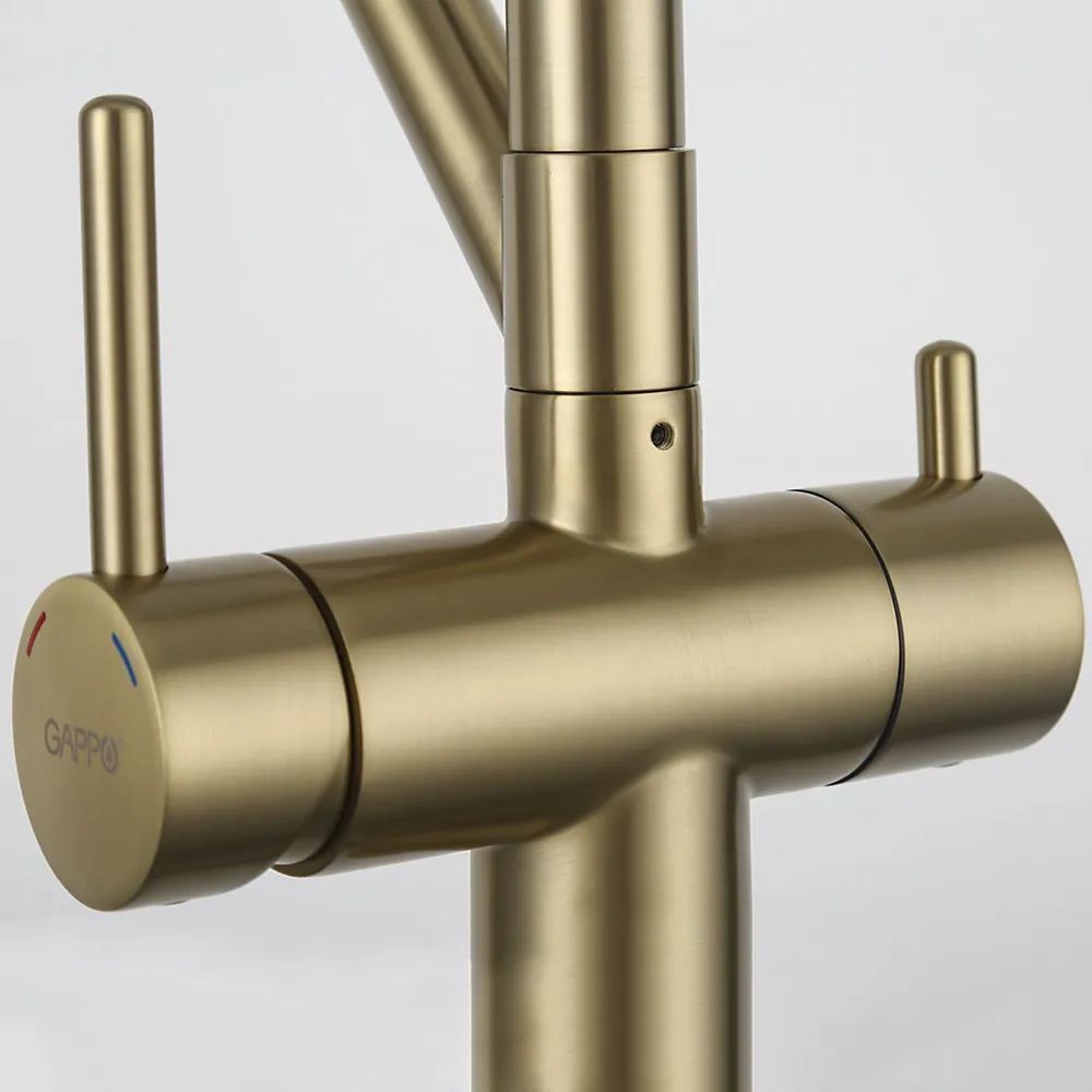 Смеситель для кухни Gappo G4398-83 с гибким изливом и подключением фильтра, материал - латунь, цвет - золото/черный.