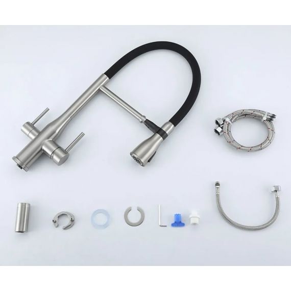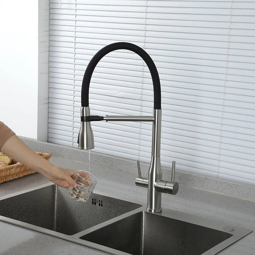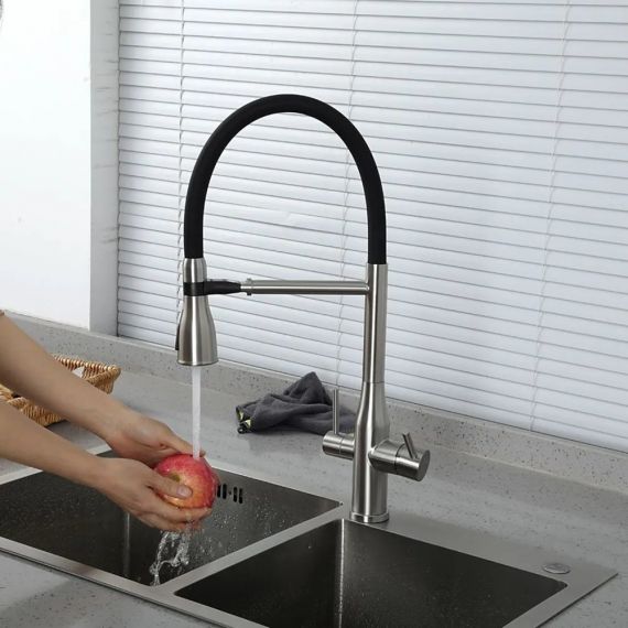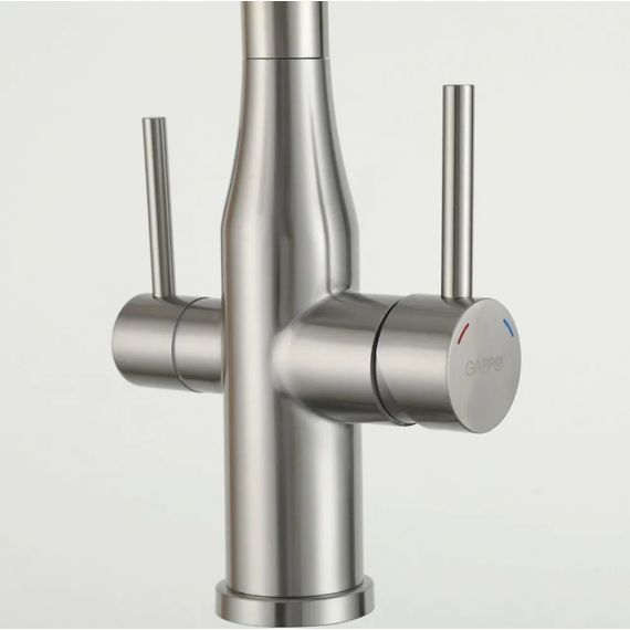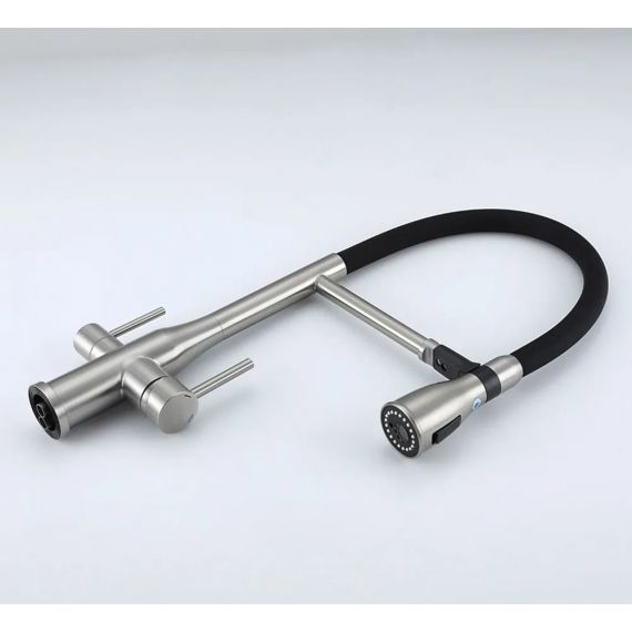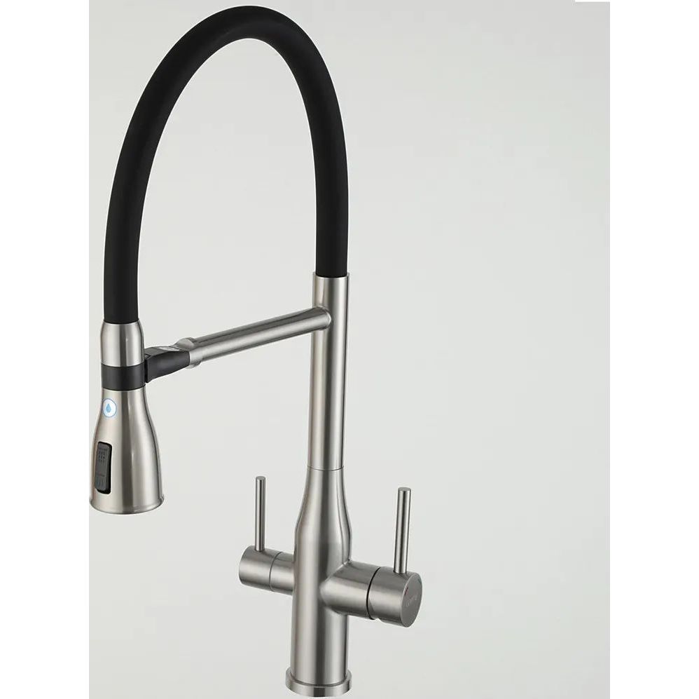 Смеситель для кухни Gappo G4399-75 с гибким изливом и подключением фильтра, материал - латунь, цвет - сатин/черный.