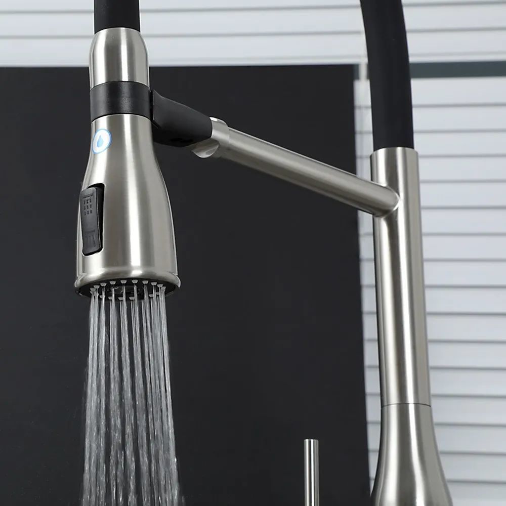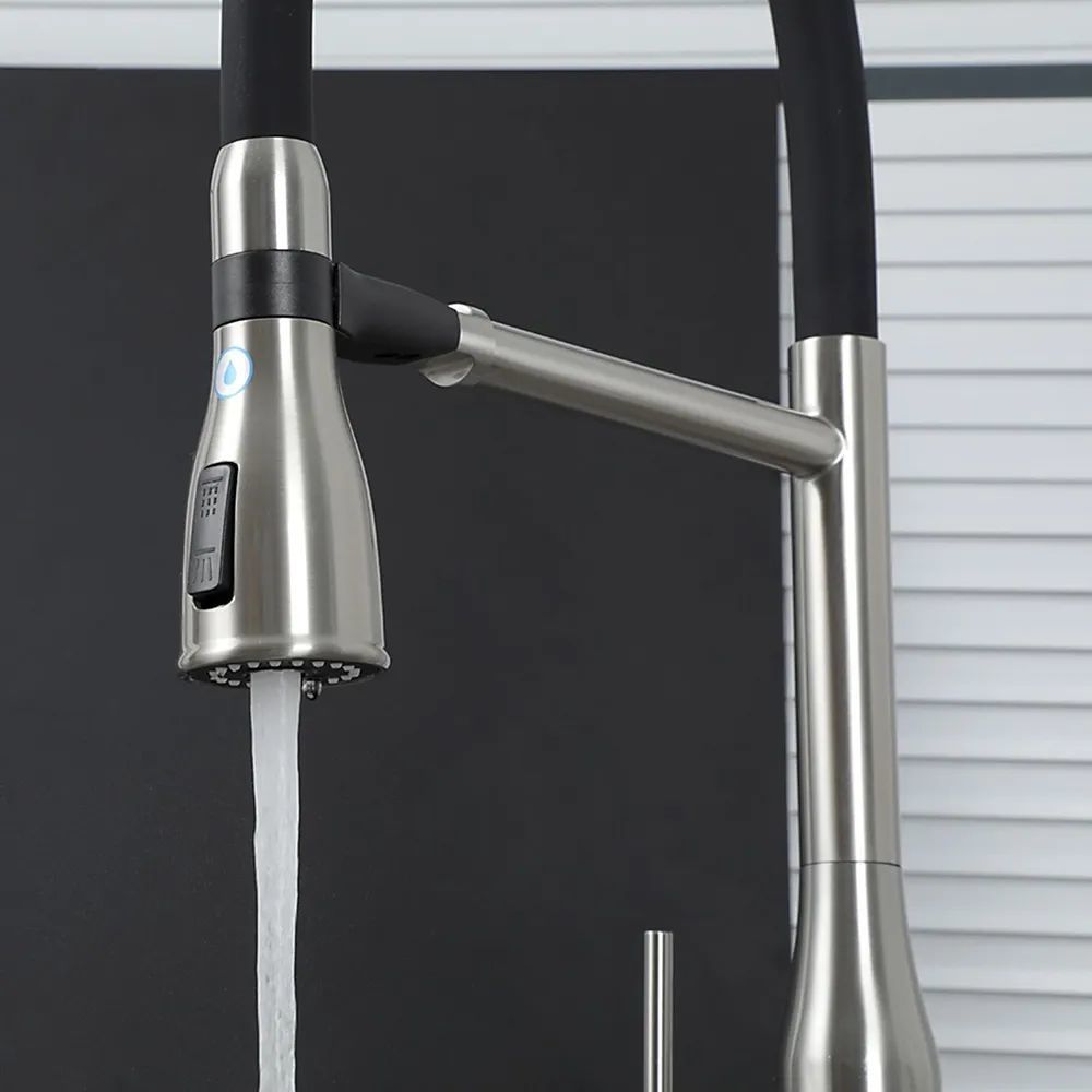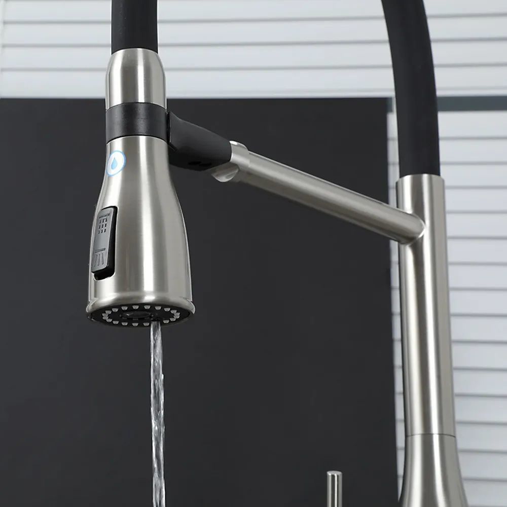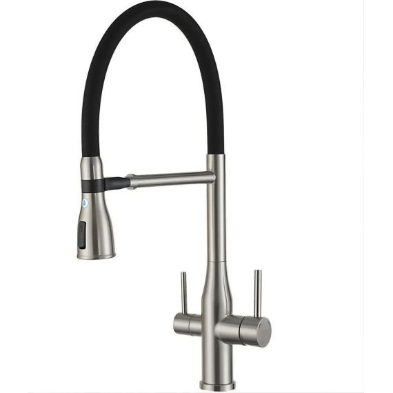 Смеситель для кухни Gappo G4399-75 с гибким изливом и подключением фильтра, материал - латунь, цвет - сатин/черный.