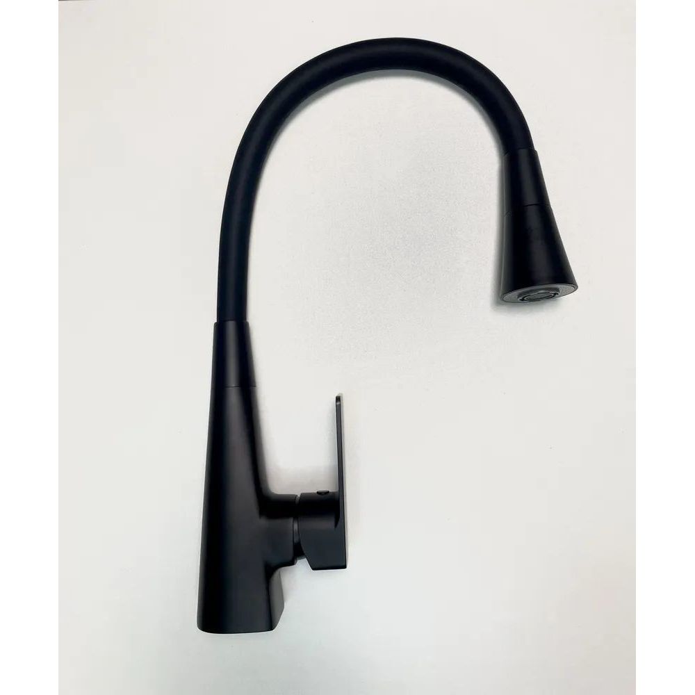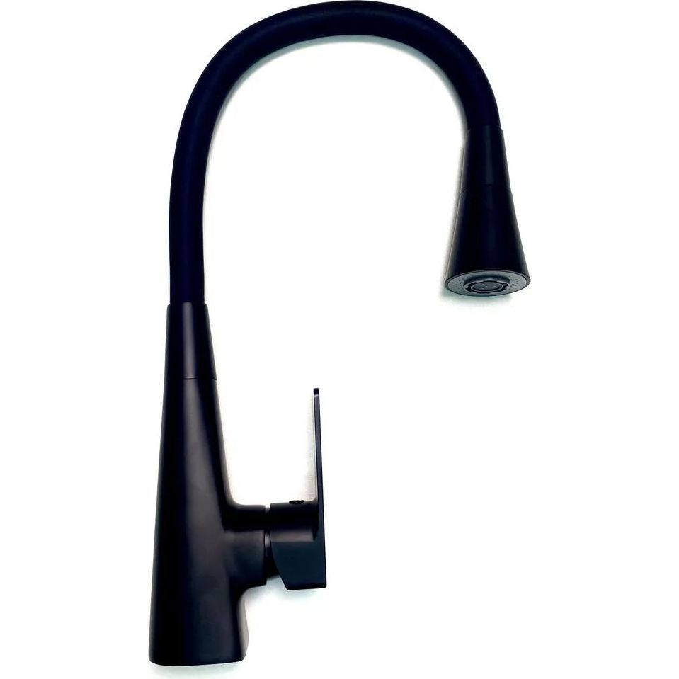 Смеситель для кухни Haiba HB73823-7 с гибким изливом и поворотным изливом, материал латунь/силикон, цвет чёрный матовый.