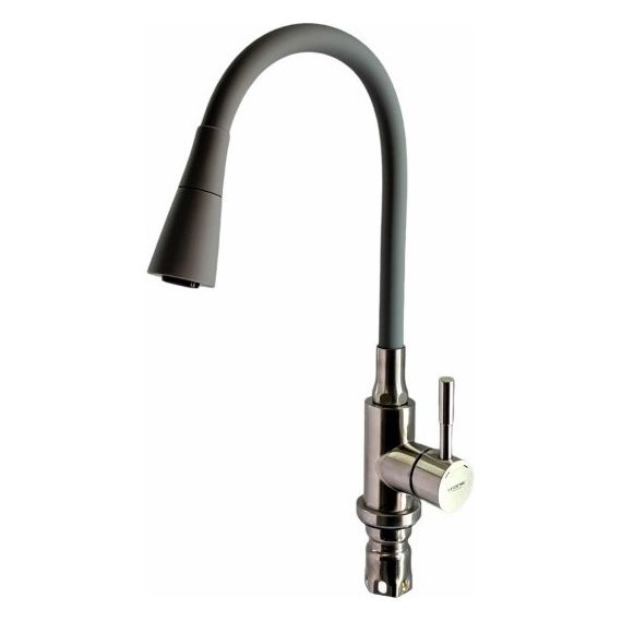 Смеситель для кухни Ledeme L74199-9 с гибким, поворотным изливом, материал - нержавеющая сталь, цвет - серый/сатин.